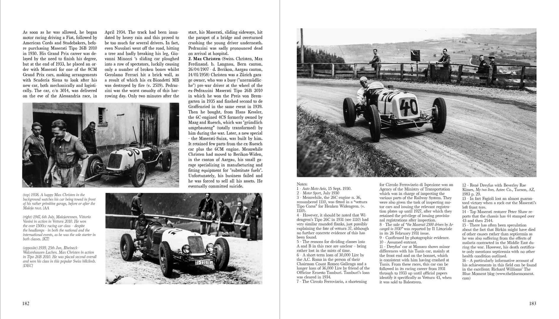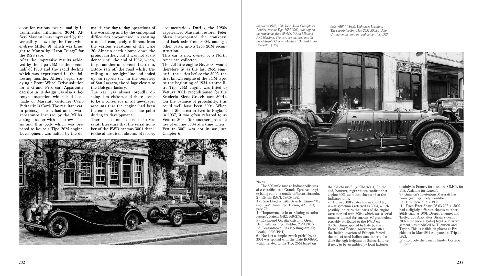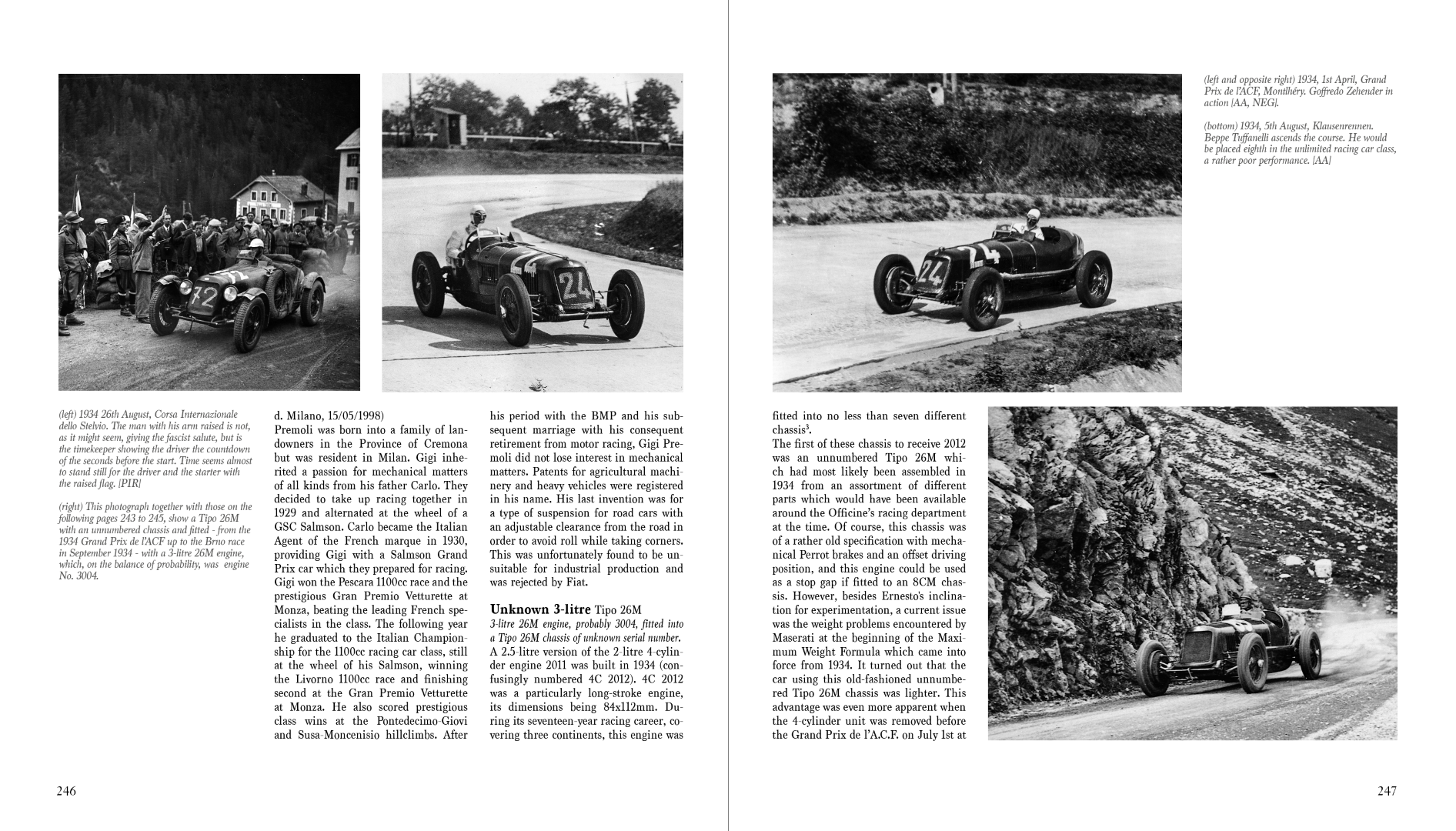 I sette capitoli trattano i vari modelli Maserati Tipo 26: 26, 26B, 26MM, 26B MM, 26R, 26C, 26C MM e i Tipo 26M e 26MM, equipaggiati con motori da 2,5, 2,8 e 3 litri.